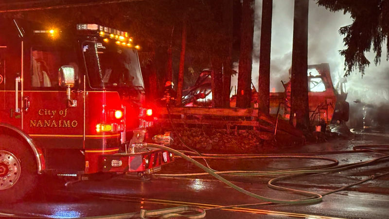 NANAIMO - Fire has completely destroyed an RV in the city's north end.Flames broke out just after 5 p.m. on Wednesday, Dec. 10 from a motor home parked in the 6600 block of Dover Rd., near Dickinson Rd., with Nanaimo Fire Rescue, BC Emergency Health Services and RCMP responding.Jake Herold was early on scene, as he was...