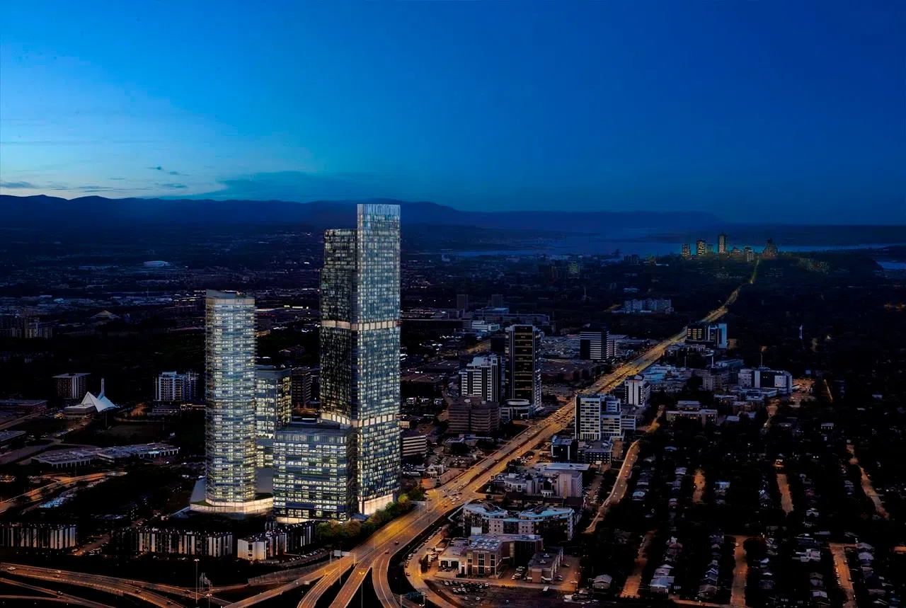 The developer, Groupe Dallaire, describes the $755-million project as a “complete vertical neighbourhood” that will include apartments, offices, hotel rooms, a public square and a concert hall.