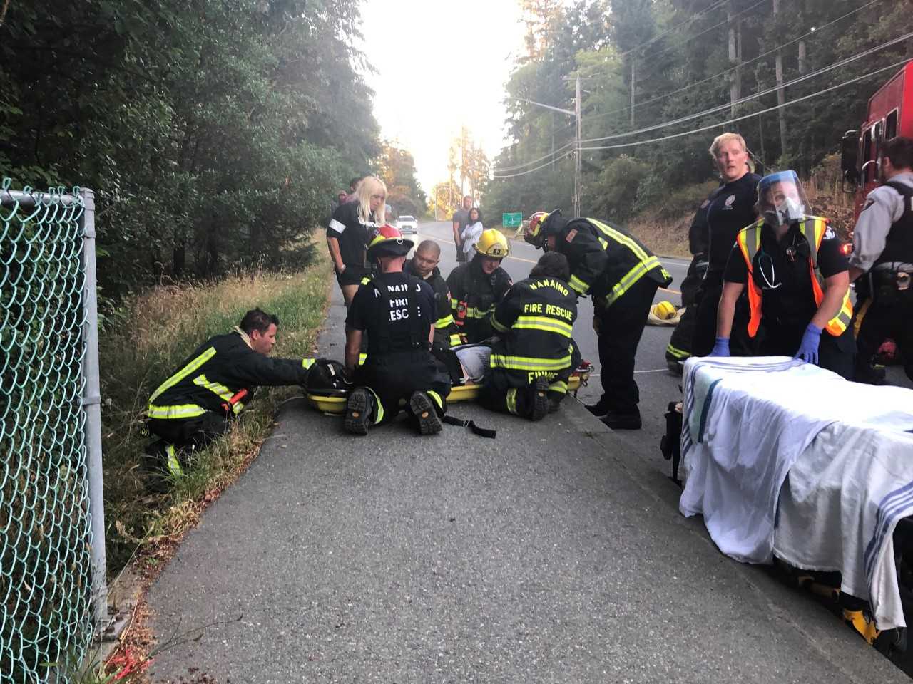 NANAIMO — A dramatic Wednesday evening crash on Rutherford Rd. saw the driver of a car lose control and propel down a steep embankment.
