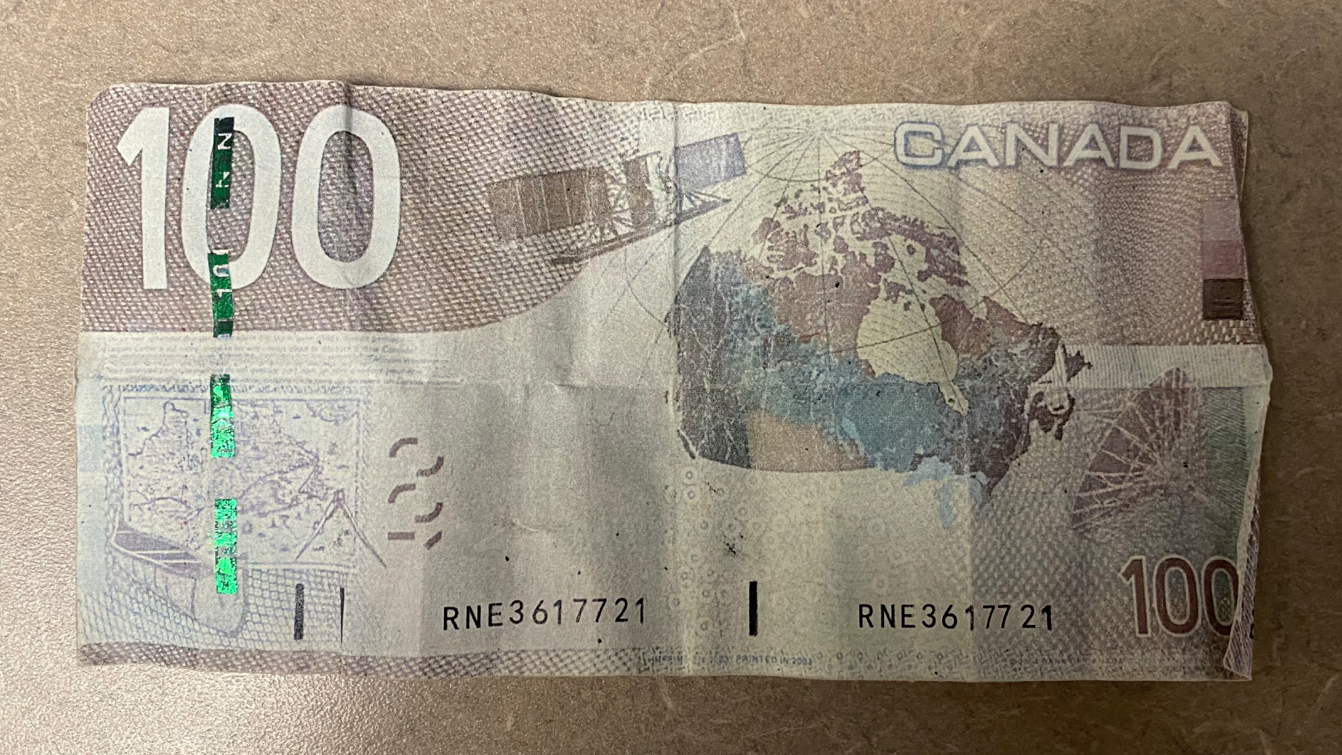 The $100 bill had a serial number of EJA8914981, while the $20 was marked with AUV7313367.