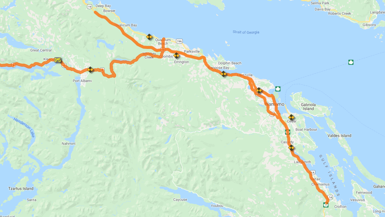 Warnings of slippery sections and compact snow are on every mid-Island highway. (Drive BC)