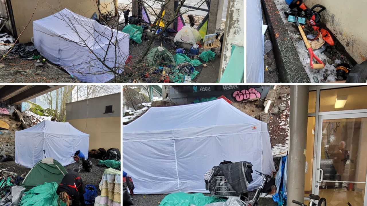 LaBerge said the encampment started small late last year, then grew following the New Years long weekend, resulting in people occupying parking stalls and completely obstructing pedestrian stairwells.