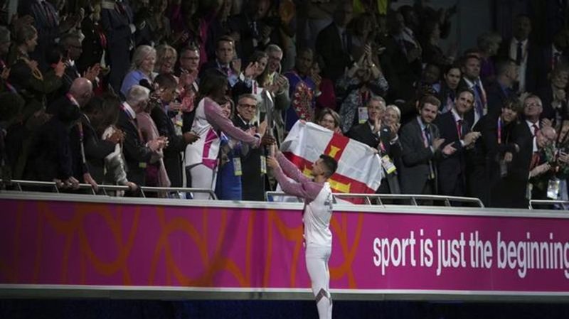 The two-time Commonwealth Games gold medalist did so with a broad smile, mindful the event is celebrating a theme of diversity and inclusion, though he also paid tribute to the six people who walked into the stadium carrying the Pride flags.