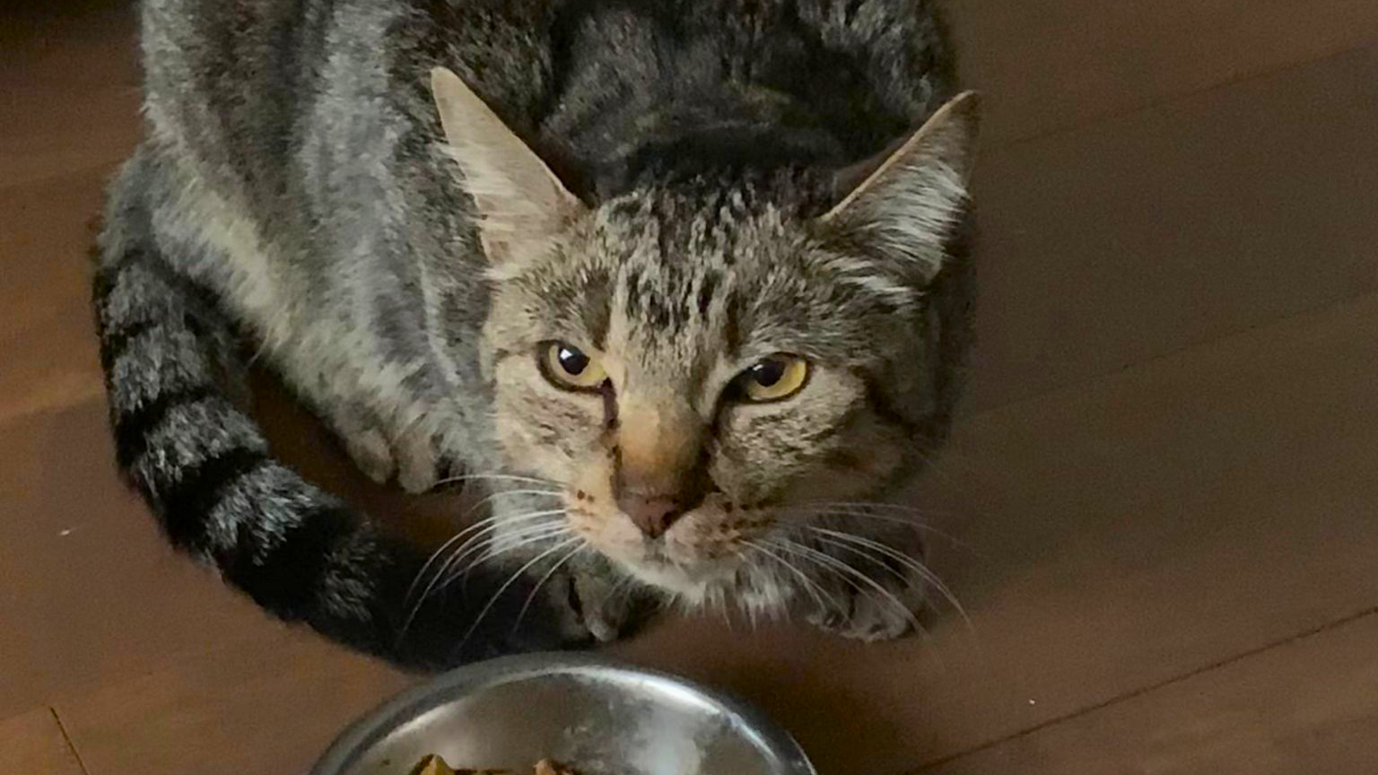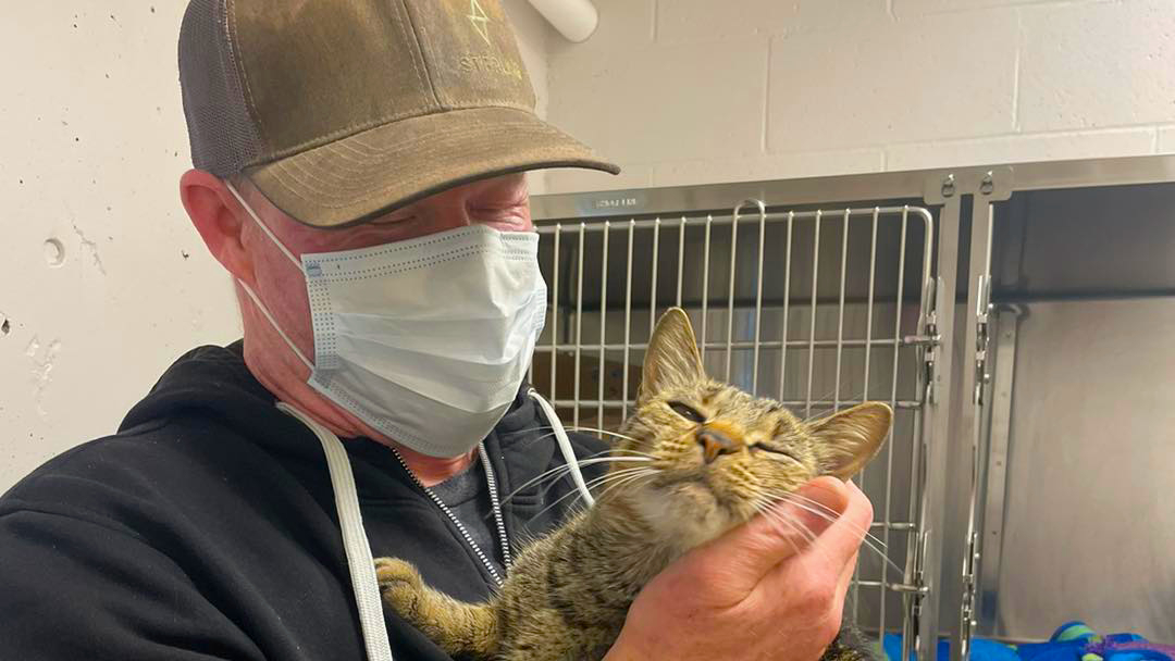 “There was just this screaming, meowing, a sking and bones scruffy looking cat out on the driveway. They came back to their house and opened the door…and he just walked in. You could tell her just needed something.”