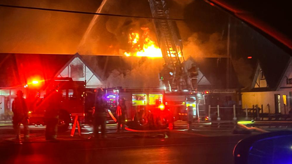 Fire rescue crews responded on Wednesday, Nov. 9 just before 9:40 p.m. to the Island Hwy. property after reports of a large fire, home to a number of businesses including a pair of restaurants, animal hospital and newspaper.