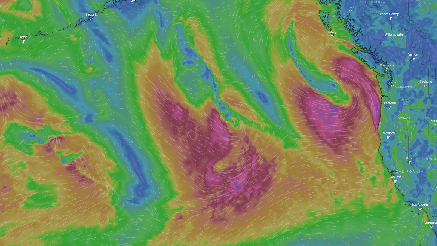 A parade of storms are lining up in the Pacific, and are due to hit parts of Vancouver Island with some regularity over the coming week. (Windy)