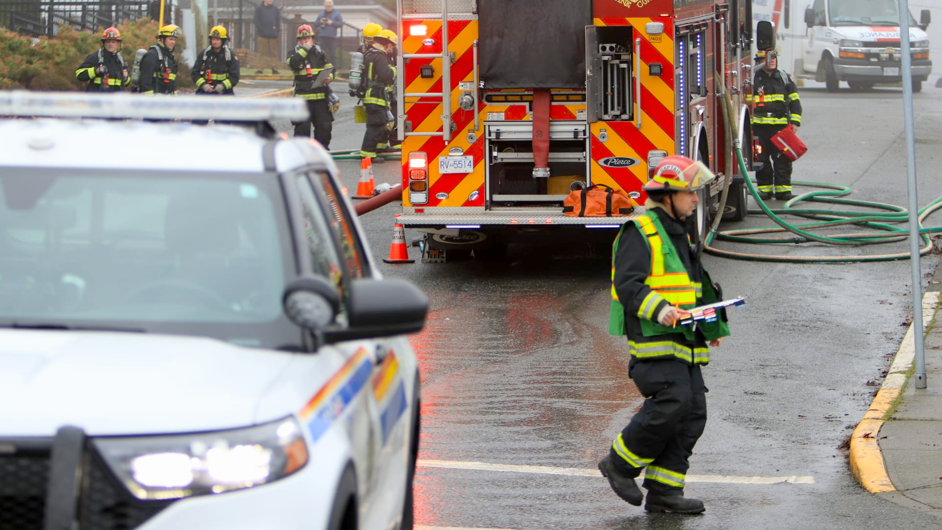 The fire was reported to Nanaimo Fire Rescue on Wednesday, Jan. 25 at 11:25 a.m. at the former Caledonian Clinic at the corner of Wallace St. and Campbell St.