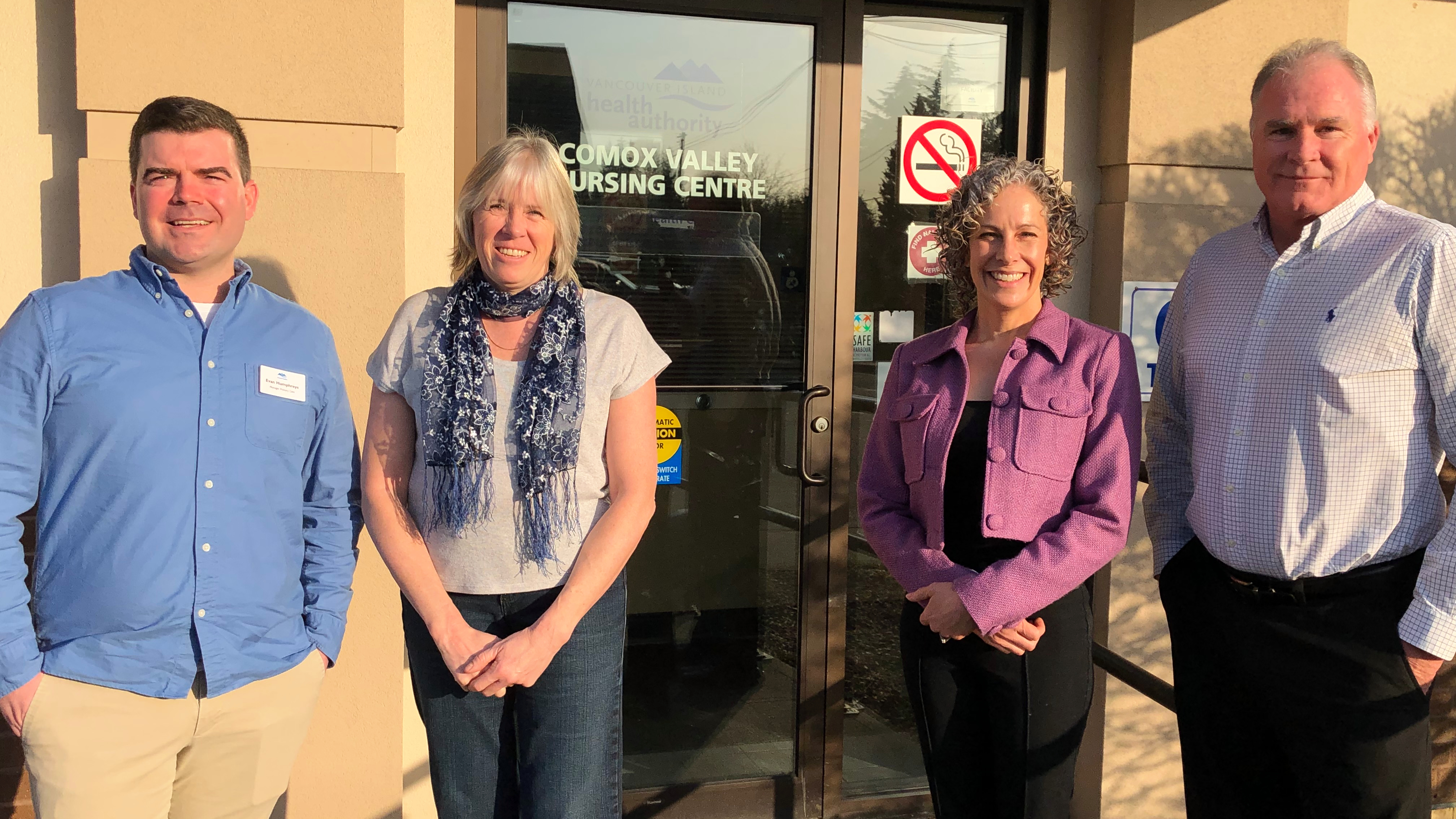 L to R: Manager of the Comox Valley Primary Care Evan Humphreys, medical health officer Dr. Charmaine Enns, executive director of the Comox Valley Healthcare Foundation Jess Aldred, and board president of the Comox Valley Healthcare Foundation Bill Anglin. (Island Health)