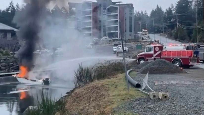 Boat bursts into flames at Nanoose marina gas dock