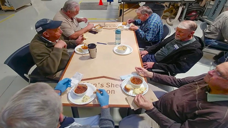 Members of a Vernon Men’s Sheds group share a meal together. (submitted)