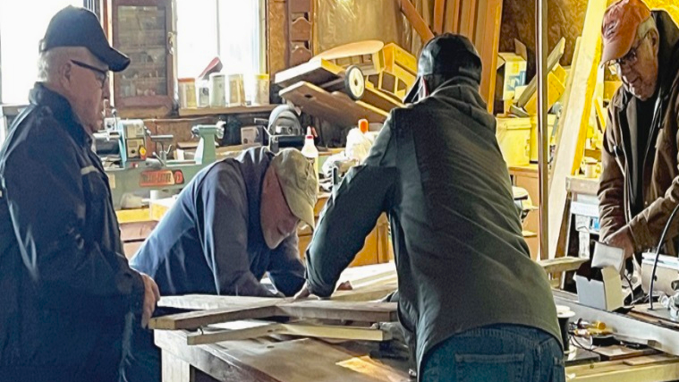 A Men’s Shed group out of Neepawa, Ontario, making sawdust together during one of their meetings. (Submitted photo)