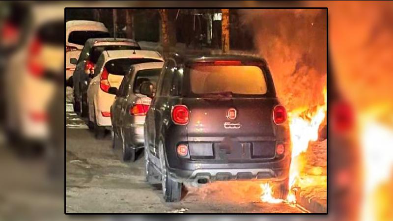 Flames were seen coming from a grey Fiat 500 parked on Summerhill Pl., near Dufferin Cres. on Tuesday, Feb. 11 around 9:30 p.m.