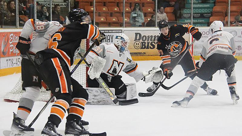Nanaimo was outshot 14-7 in the first period but the game remained scoreless thanks to some stellar netminding from Vladimir Nikitin.