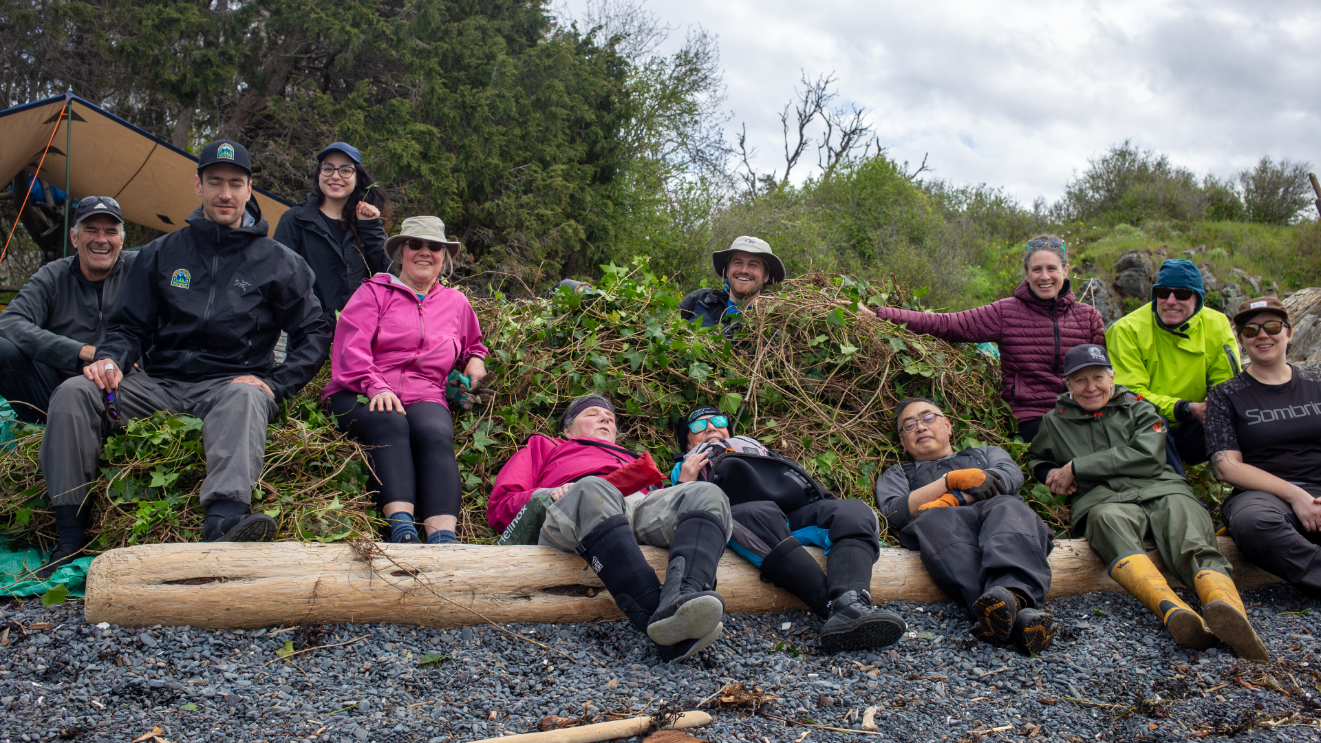 Nearly 30 staff and volunteers with BC Marine Trails worked between April 10 to 13 to clear hundreds of tarp-loads of invasive English ivy from Gerald Island, around two kilometres northwest of Dolphin Beach.