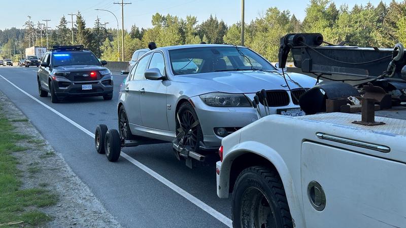 BC Highway Patrol officers were working the Trans Canada Hwy. near Nanaimo River Rd., on April 25 at around 5 p.m. when a silver BMW flew through the area southbound going 218 kilometres per hour in the 90 kilometre zone.