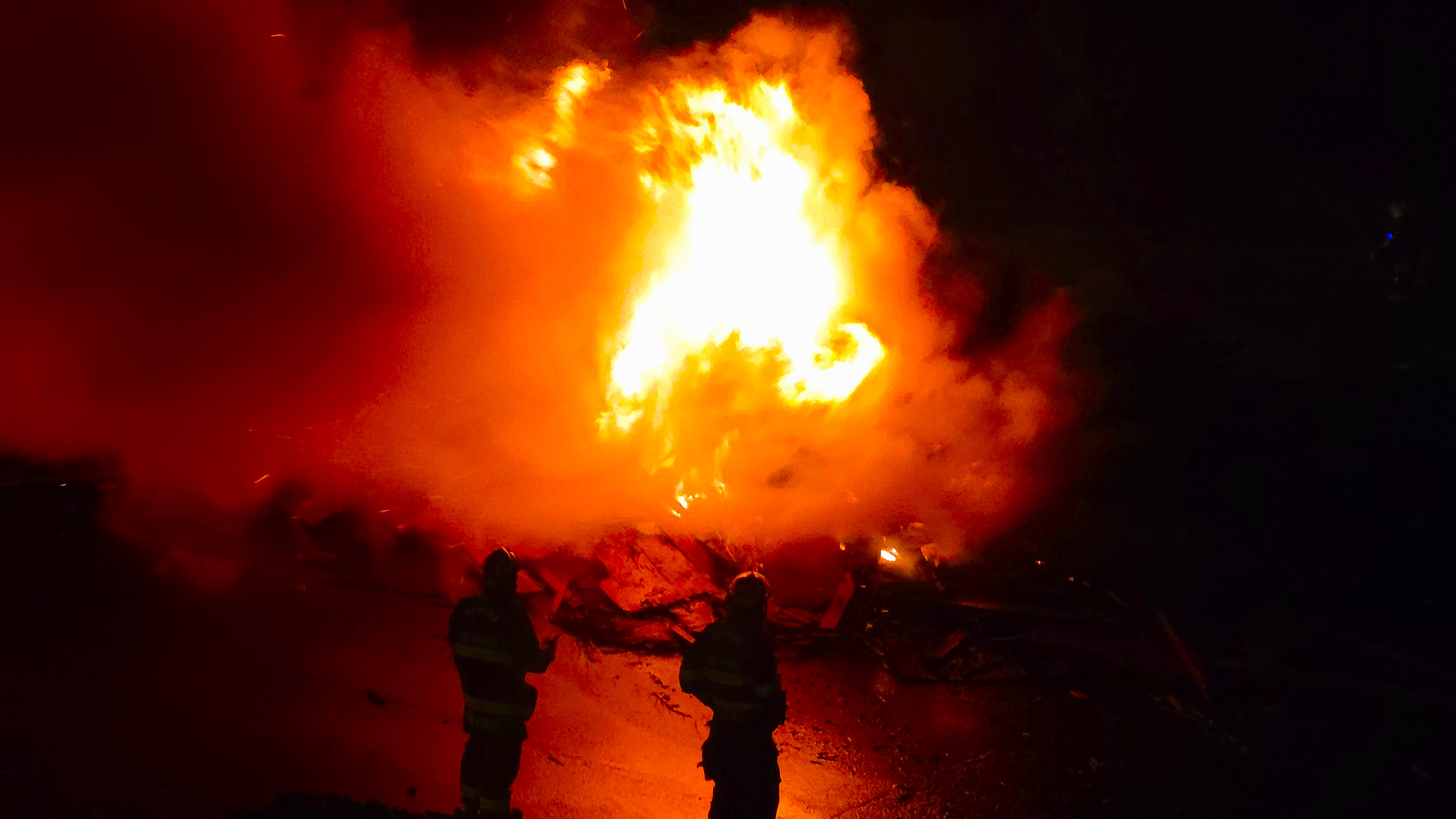 “Once they got on scene and did their recon and noticed it was a fairly large debris pile, we stood down two engines and two engines remained on scene to extinguish the fire, with the help of an excavator on scene as well.”