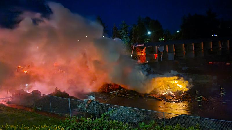 Assistant fire chief Stu Kenning told NanaimoNewsNOW four engines were dispatched to the property, as large flames were visible and smoke was covering much of Nanaimo’s downtown.
