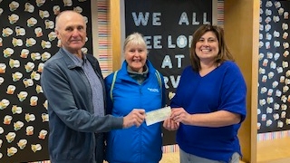 (L-R) President of the NLBC Ian Yewer, NLBC games director Heather Morrison, and principal of Fairview Elementary School Cindy Haack, being presented with the donated money from the 2024 lawn bowling marathon event. (Submitted)