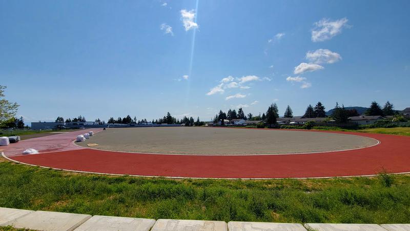 The six-lane, rubberized Oceanside Community Track at Ballenas Secondary School in Parksville is getting the lines painted this week and will soon be available for public use.