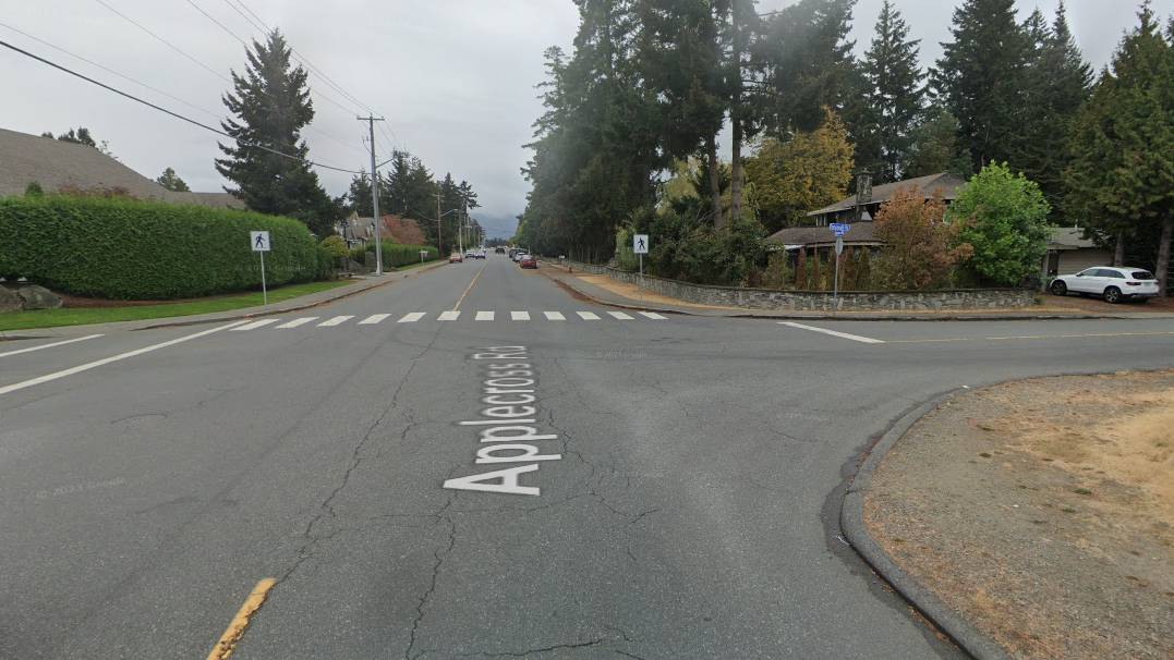 A raised crosswalk on Portsmouth Rd. at Applecross Rd. is expected to help curb vehicle speeds through the north Nanaimo corridor. (Google Maps)