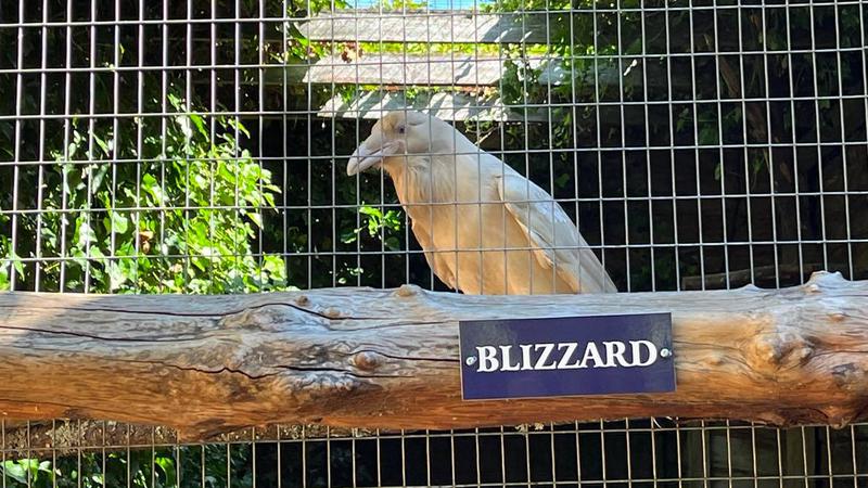 Blizzard, a popular white raven, was discovered deceased in its cage on Monday, July 28, representing a tough setback for the North Island Wildlife Recovery Centre. (NIWRC)