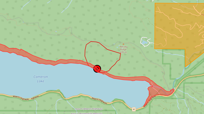 Wildfire above Cameron Lake grows overnight, evacuation orders & alerts remain