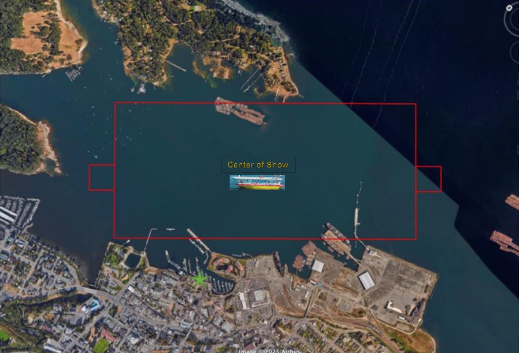 An evening show is planned for Friday, Aug. 15 between 7:00 p.m. and 7:45 p.m., with a second, daytime performance slated for Saturday from 4:15 p.m. until 5:00 p.m. above downtown Nanaimo’s waterfront.