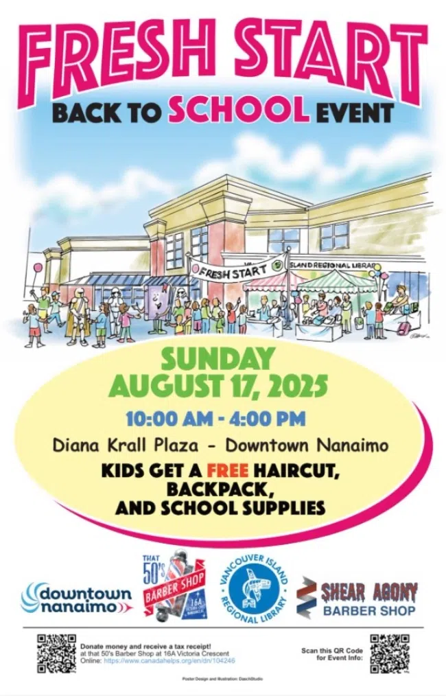 NANAIMO — Dave Lawrence’s first year of complimentary haircuts and handing out supplies drew about 75 school-aged kids to his Victoria Crescent shop.