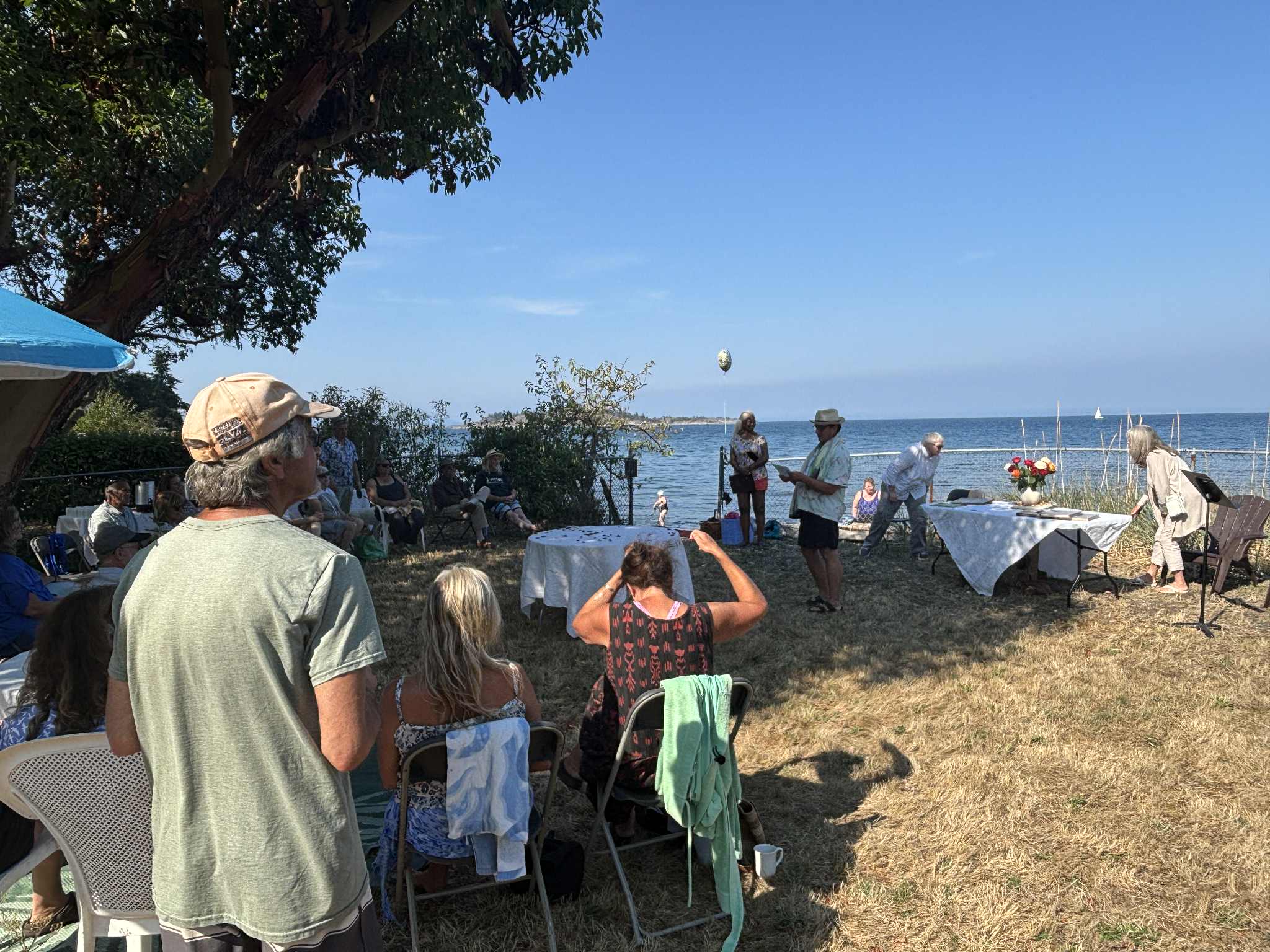 A public gathering for John Garenkooper was held at his waterfront property at the base of Lantzville’s Harper Rd. on Wednesday, Sept. 3, on what would have been his 90th birthday.