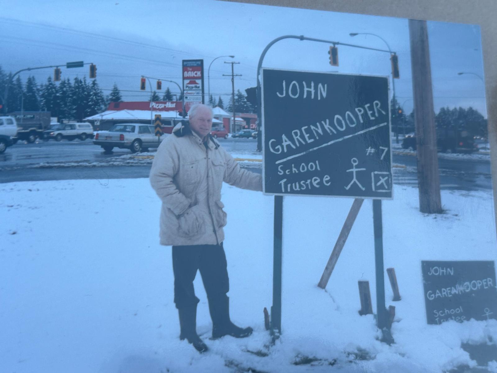 Garenkooper’s home-made election signs evidently weren’t a hindrance in obtaining an extended run as a School District 68 trustee (Submitted photo)