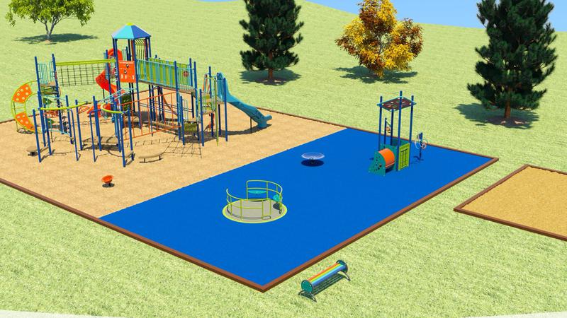 “We’ll have a ninja wall, a spinner that is wheelchair accessible. Half of it will be rubberized, the other half will be soft fall…monkey bars, slides.”