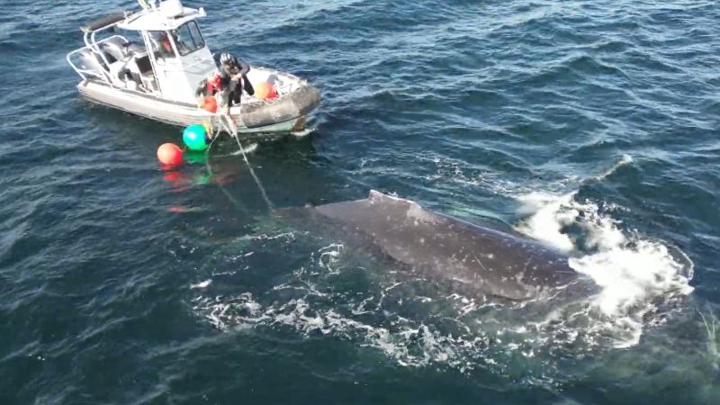VIDEO: Humpback whale freed from over 450 feet of fishing gear near Nanoose Bay