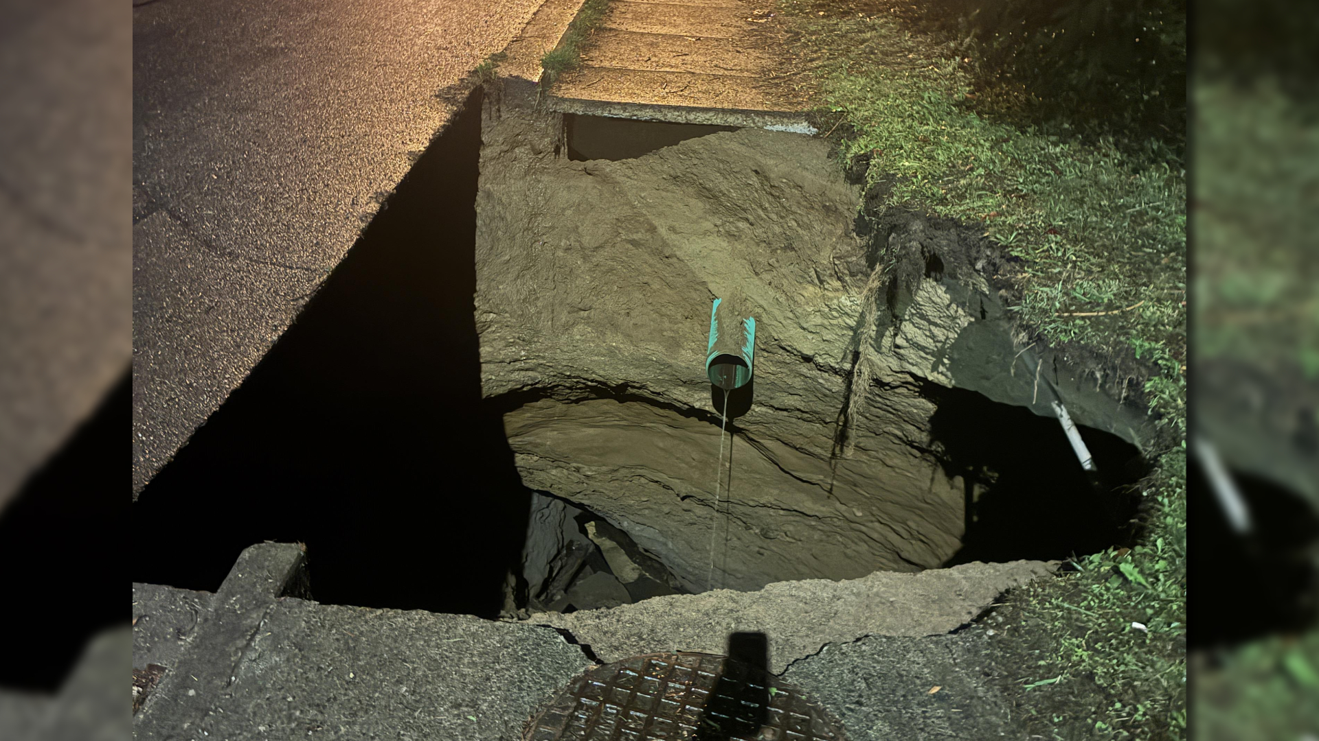 City general manager of engineering and public works Bill Sims told NanaimoNewsNOW the hole stems from an old mine void and is across the street from a similar sinkhole which appeared 25 years ago.