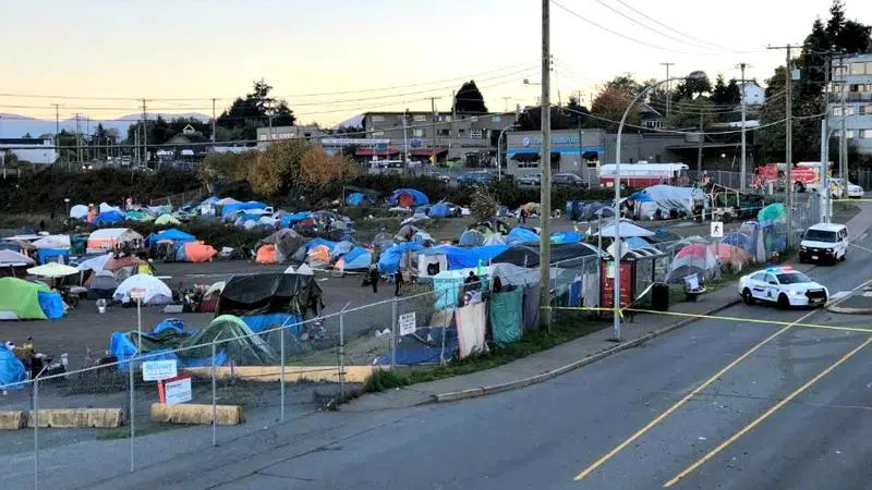 Vincent Lebow resided in this large homeless encampment, which required a BC Supreme Court injunction to shut down. (file photo/NanaimoNewsNOW)