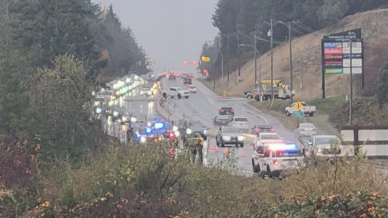 Nanaimo RCMP Res. Cst. Gary O’Brien said one southbound lane of Highway 19A (Old Island Hwy) is closed between Turner and Mostar roads for vehicular and pedestrians.