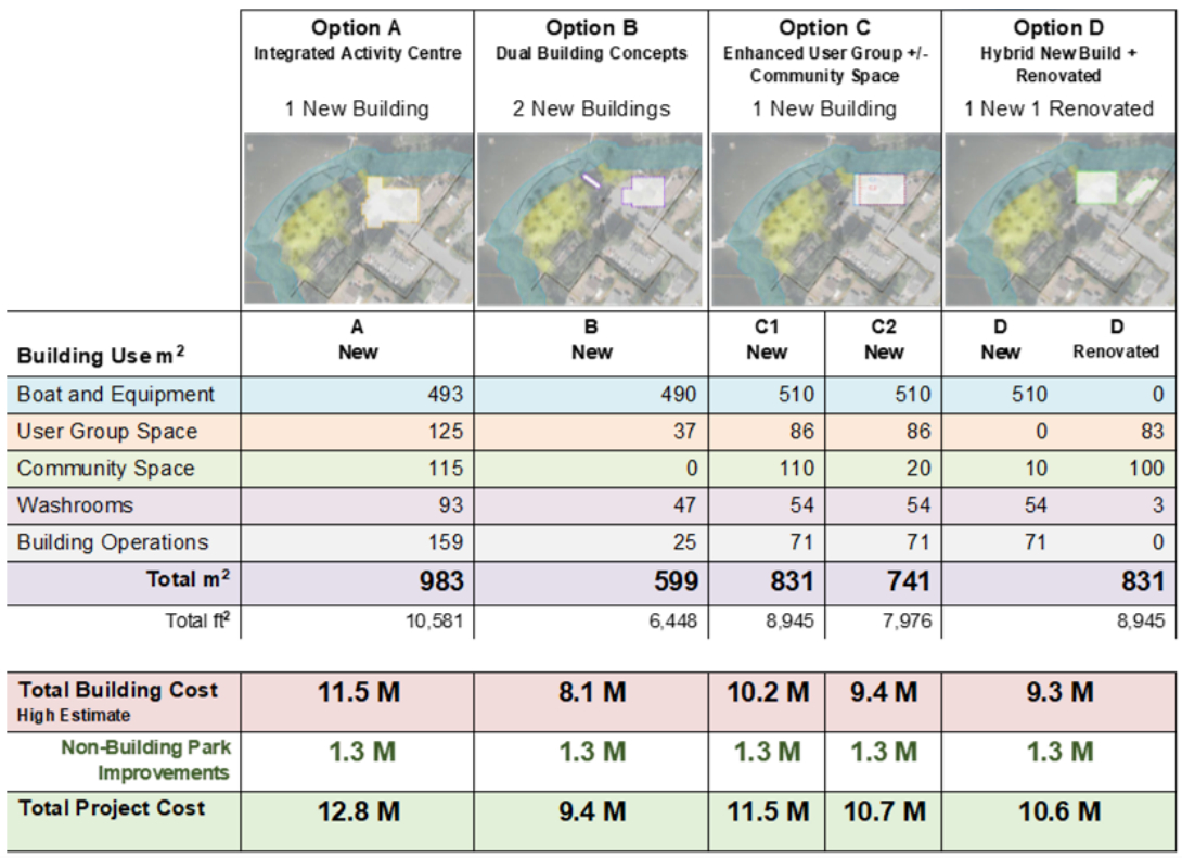 Some user groups, however, were consistent in their requests, encouraging councillors to proceed with option C1, which includes the largest proposed boat and equipment storage room, as well as community space.