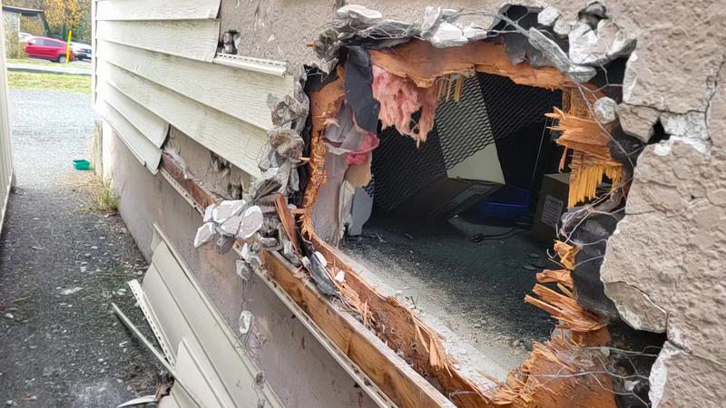 Jeremy Daniels with Gold Silver Guy in Nanaimo got the alarm call at 4:00 a.m. on Wednesday, Nov. 19, and rushed down to their location on Townsite Rd. to find several police already on scene and a large hole smashed into the side of his business used to gain entry.