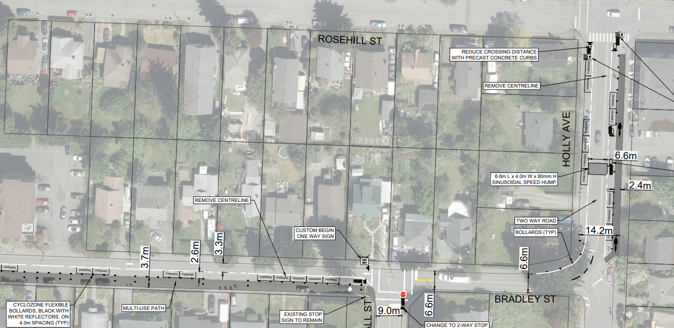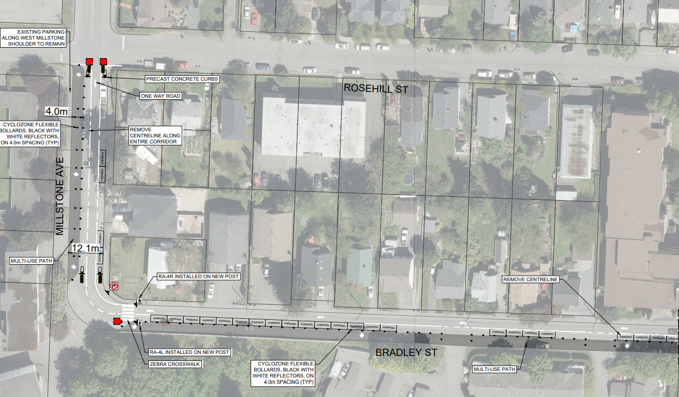 Also included in the project, which was put on the City’s radar by multiple neighbourhood concerns, is a multi-use pathway on one side of Bradley St. and Millstone Ave., and a speed hump installed on Holly Ave.