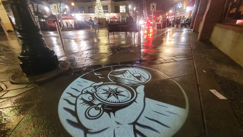 The City unveiled “Sensing Nanaimo” on Thursday, Dec. 4, featuring a series of black and white projected artworks along Commercial St.