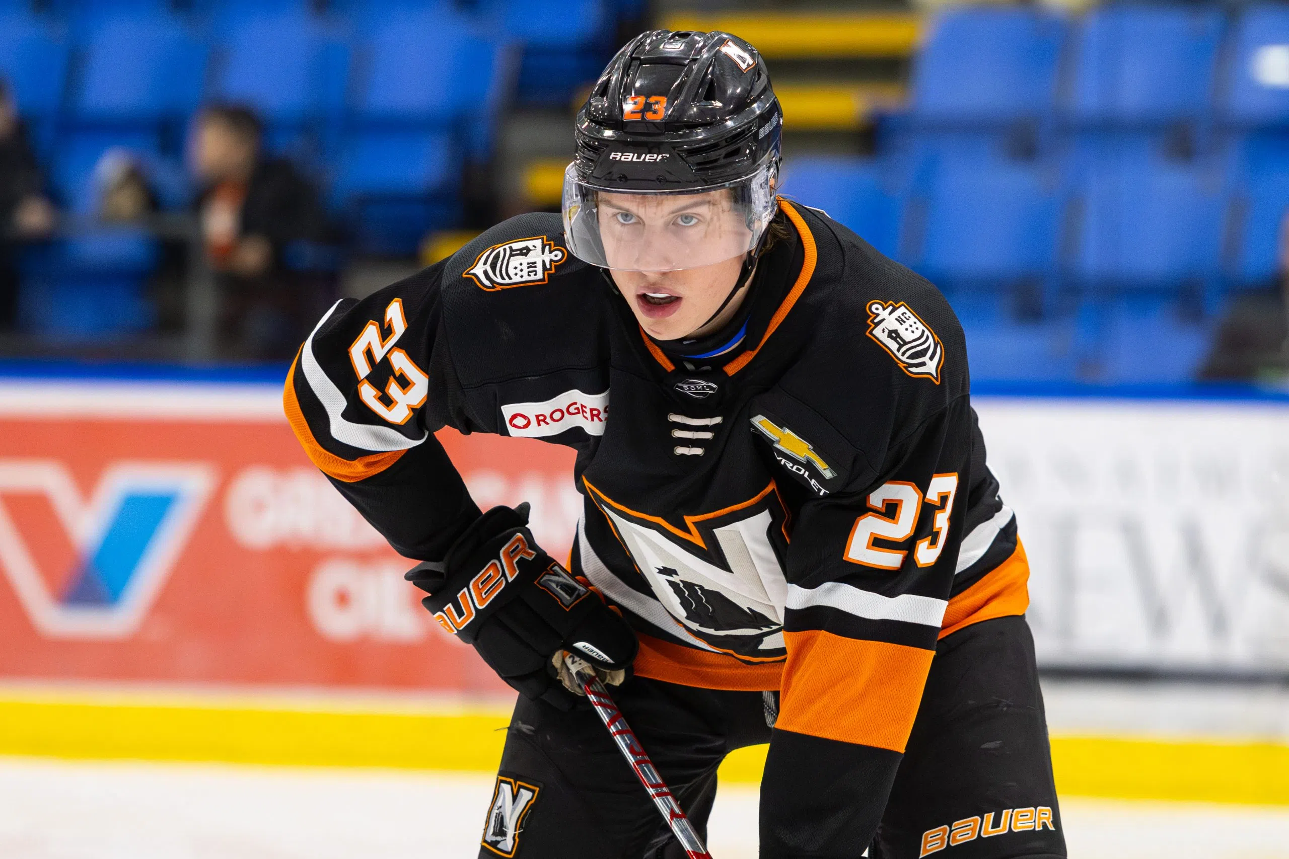 Tanner Bruender picked up a goal in his sixth straight game to bring the score to 3-2 after 20 minutes.