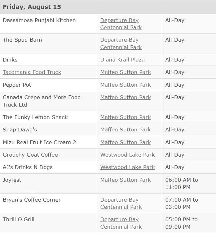 Nanaimo Food truck location calendar goes live