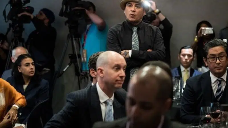 VANCOUVER - An Indigenous protester opposed to the Trans Mountain pipeline expansion interrupted a speech by Prime Minister Justin Trudeau at a Liberal fundraiser on Wednesday. Will George of the Tsle...