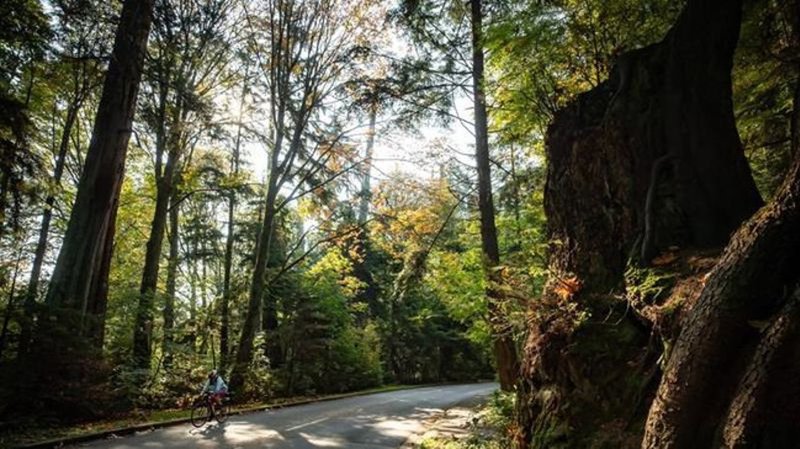 Temporary dedicated bike lane replaces one vehicle lane through Stanley Park