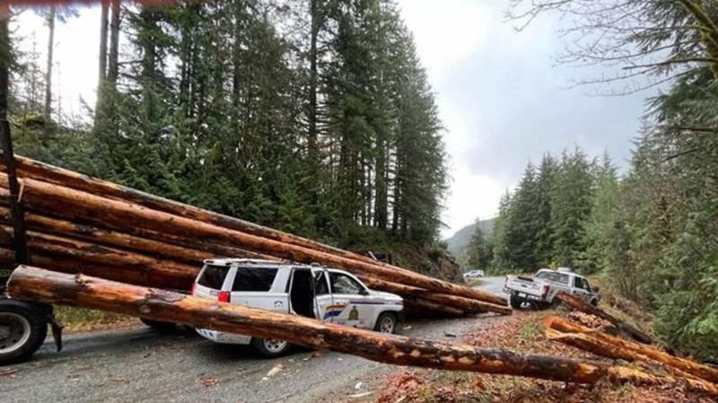 Logging truck collides with RCMP vehicles headed to enforce B.C. injunction