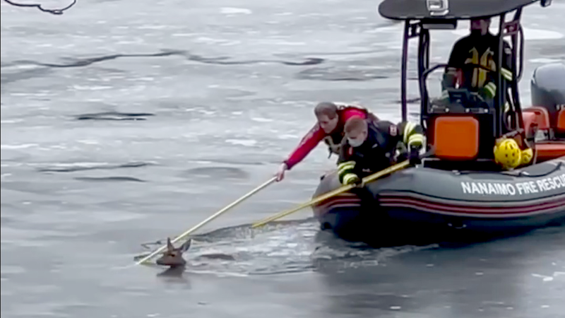 VIDEO: Nanaimo firefighters rescue young deer from icy Westwood Lake waters
