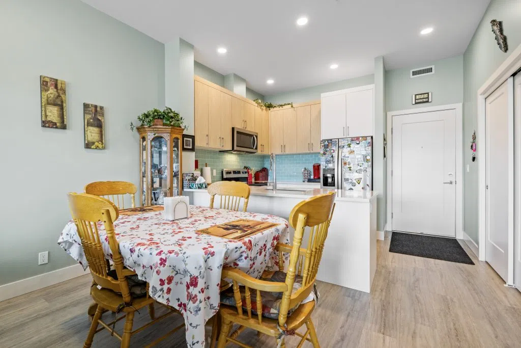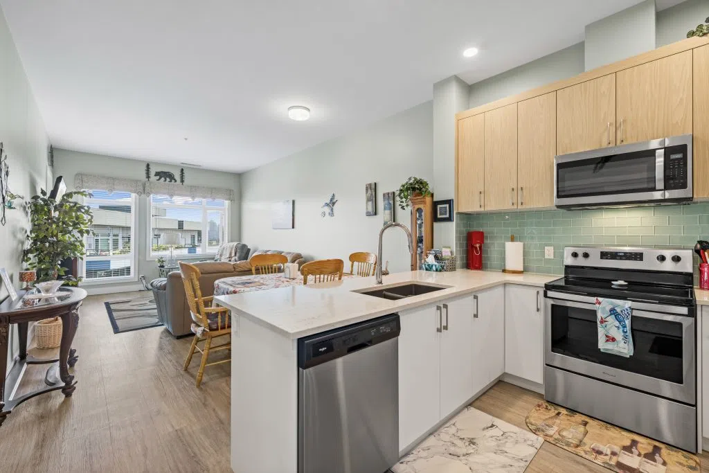 Welcome to this immaculate penthouse at The Met—a 2 bed, 2 bath top-floor unit offering stunning ocean views and soaring 10 ft ceilings. This bright, open-concept home features floor-to-ceiling windows and a smart, functional layout. Located in one of Nanaimo’s most walkable areas, you’re just a short stroll to over 200 amenities, including gyms, pet care, restaurants, grocery stores, a boutique butcher, bakery, and Woodgrove Mall. Includes underground parking and storage. Experience stylish, low-maintenance living with a West Coast vibe. Data and measurements approximate, to be verified if deemed important.