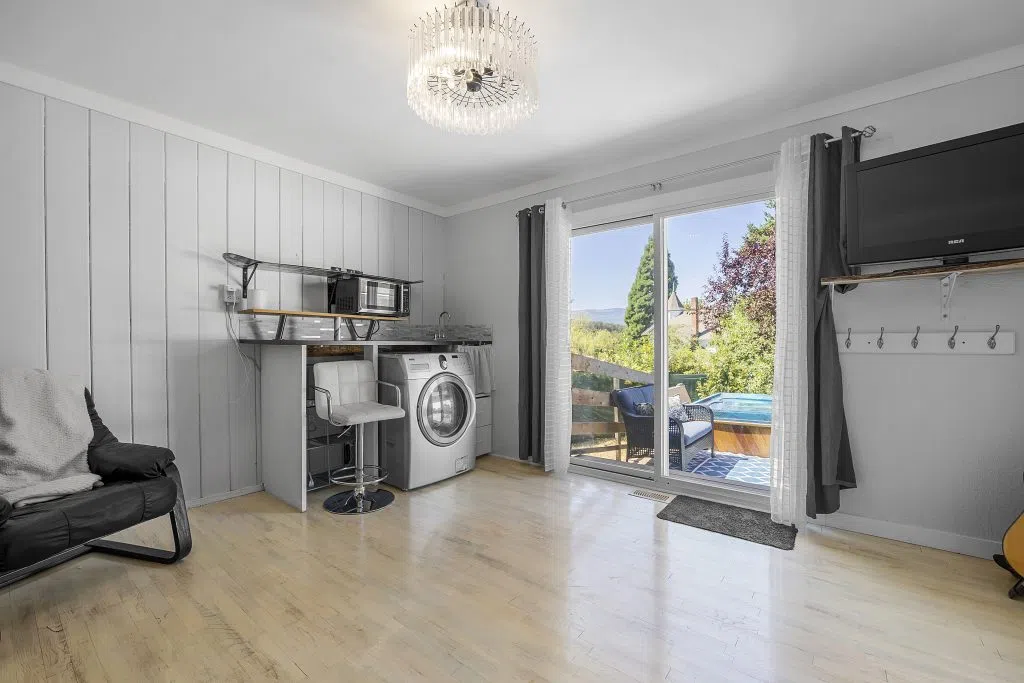 Welcome to this immaculate home with a bright, newer legal 1-bedroom suite. Sure to impress, this beautiful home features fresh paint, newer flooring, updated light fixtures, stainless steel appliances, vinyl windows numerous upgrades, and an open-concept design with a beachy feel throughout. Both the main house & suite are rancher-style & ideal for many living options—from Airbnb to multigenerational living. The suite is perfect for families needing space for parents or grandparents, or as a great mortgage helper. Both spaces are bright and private, separated by a fence outside and a flex space inside. Each has its own patio or deck to enjoy the peaceful, sunny backyard, perfect for gardeners and sun lovers. The main home has a hot tub, private patio for BBQs, and a storage room off the carport, plus storage in both crawlspaces. Close to amenities and designed for flexibility, this home is turnkey and ready for its next owner. All data and measurements approx, verify if important.