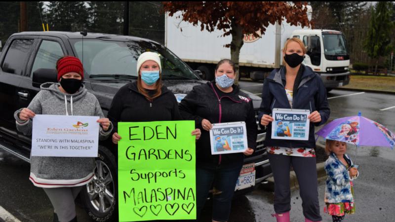 NANAIMO - A Nanaimo care home is standing in solidarity with a long-term care home currently suffering a COVID-19 outbreak. Staff from the Eden Gardens dementia care clinic honked their horns and wave...